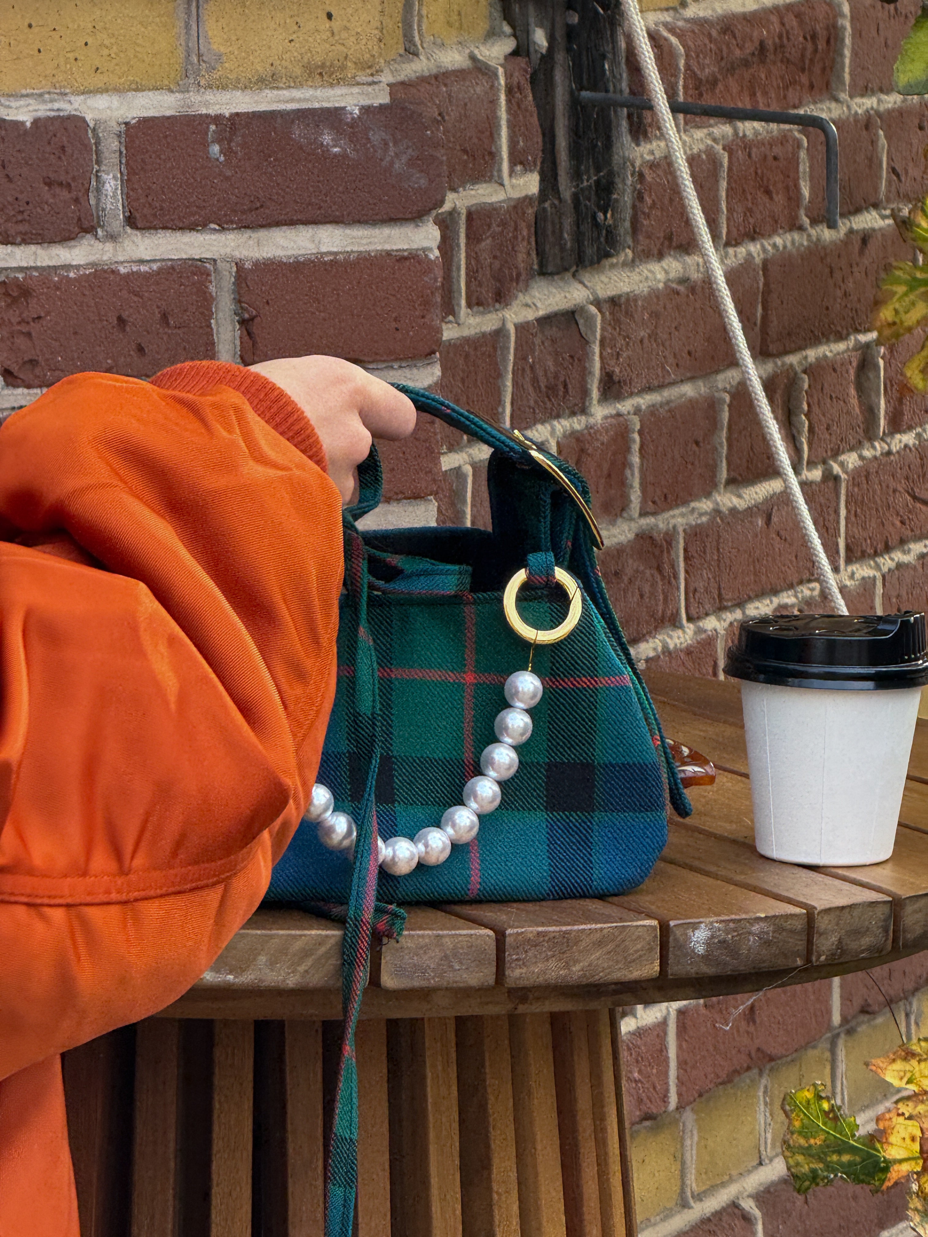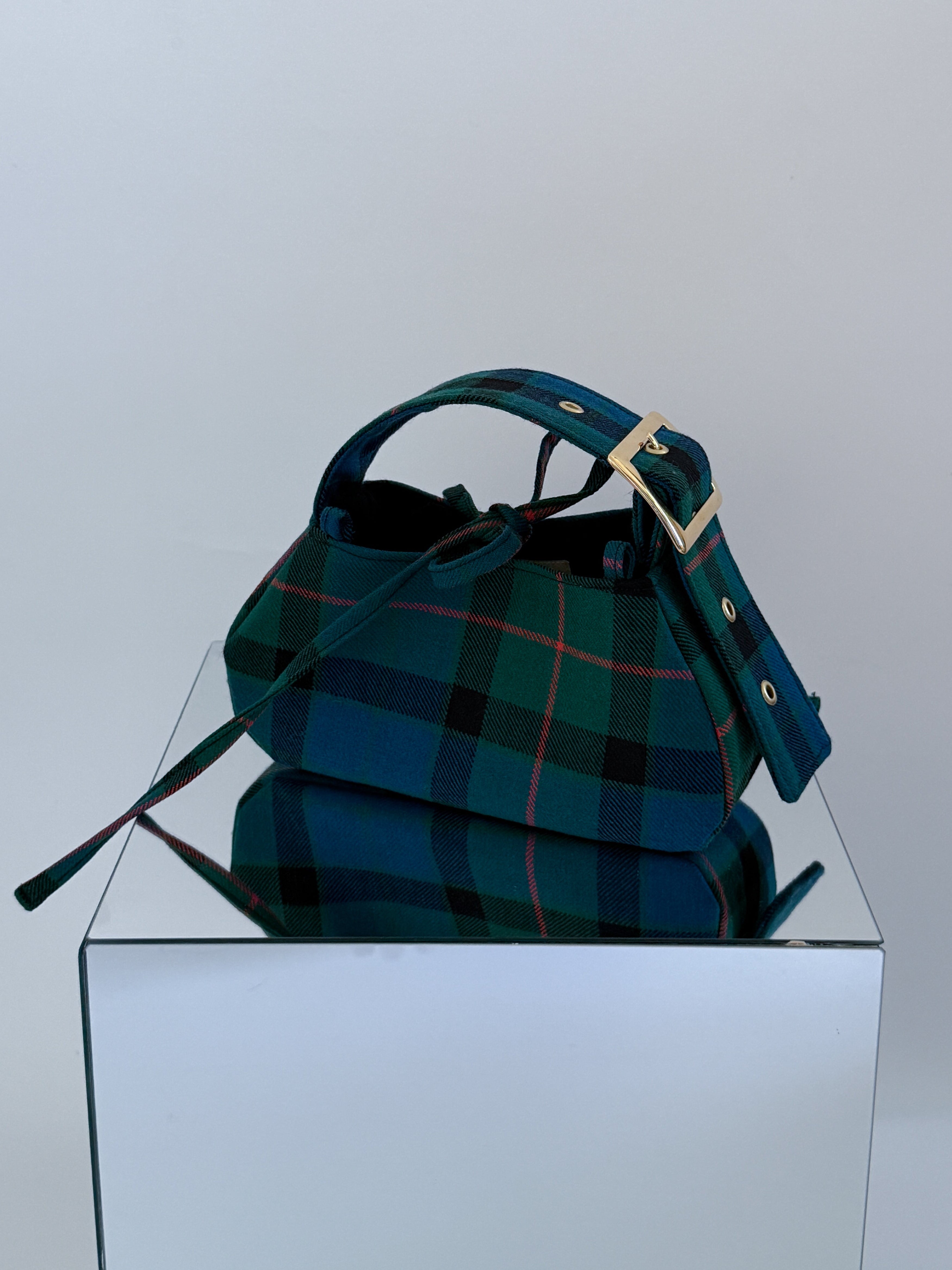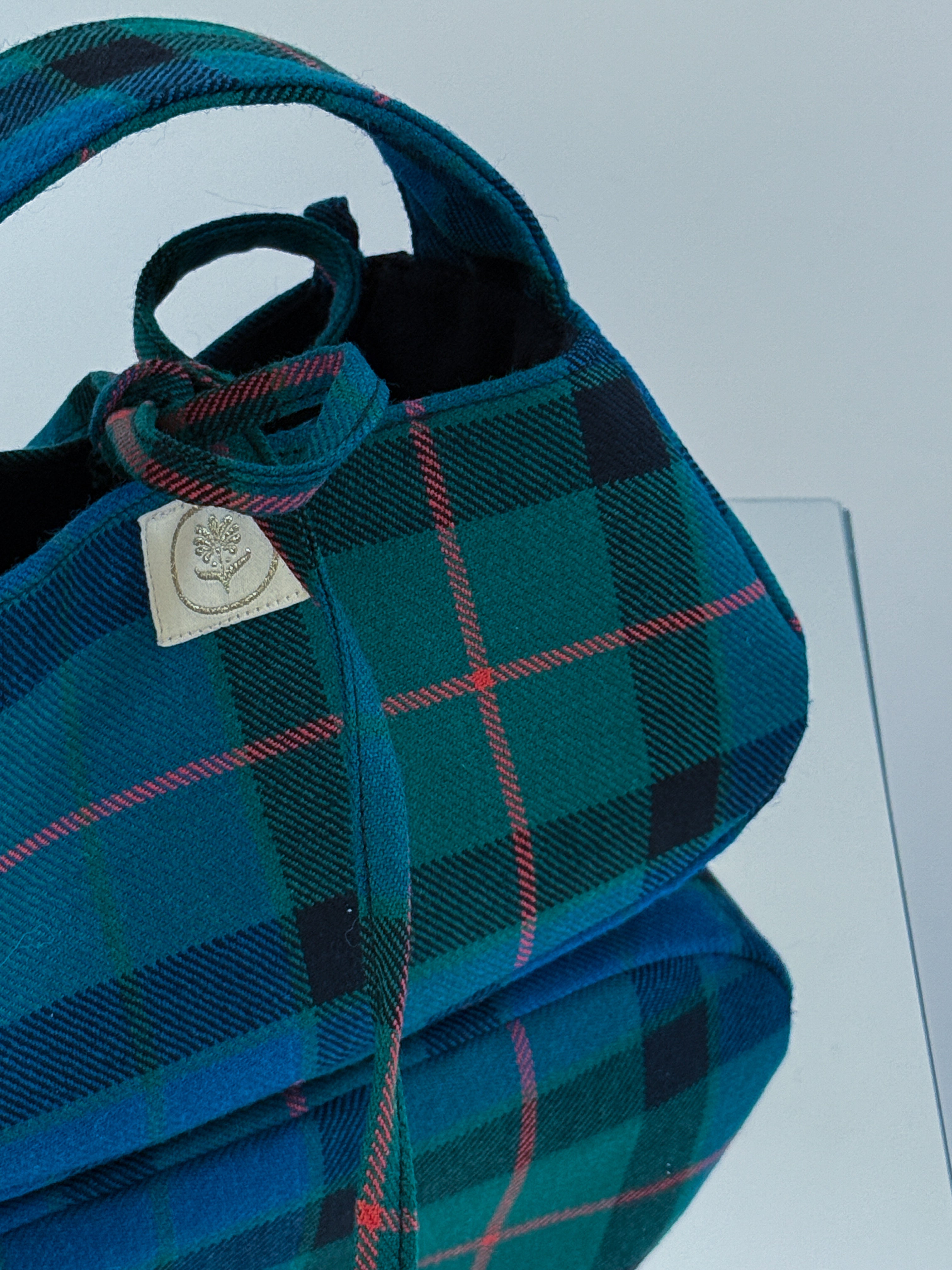 This beautiful bag is crafted from richly textured, soft wool fabric with a classic check pattern from Scotland and lined with 100% soft cotton.