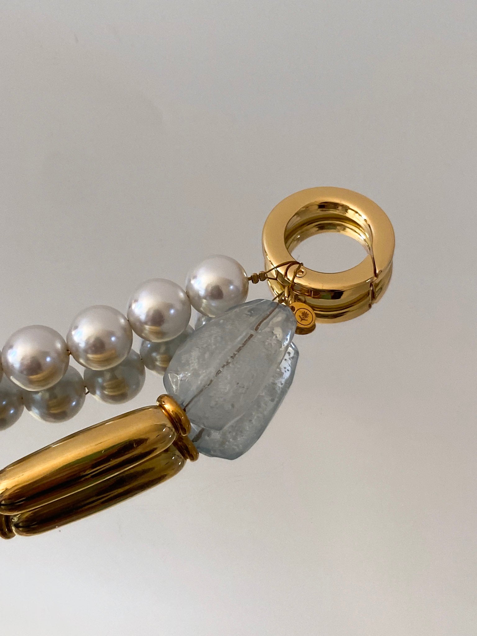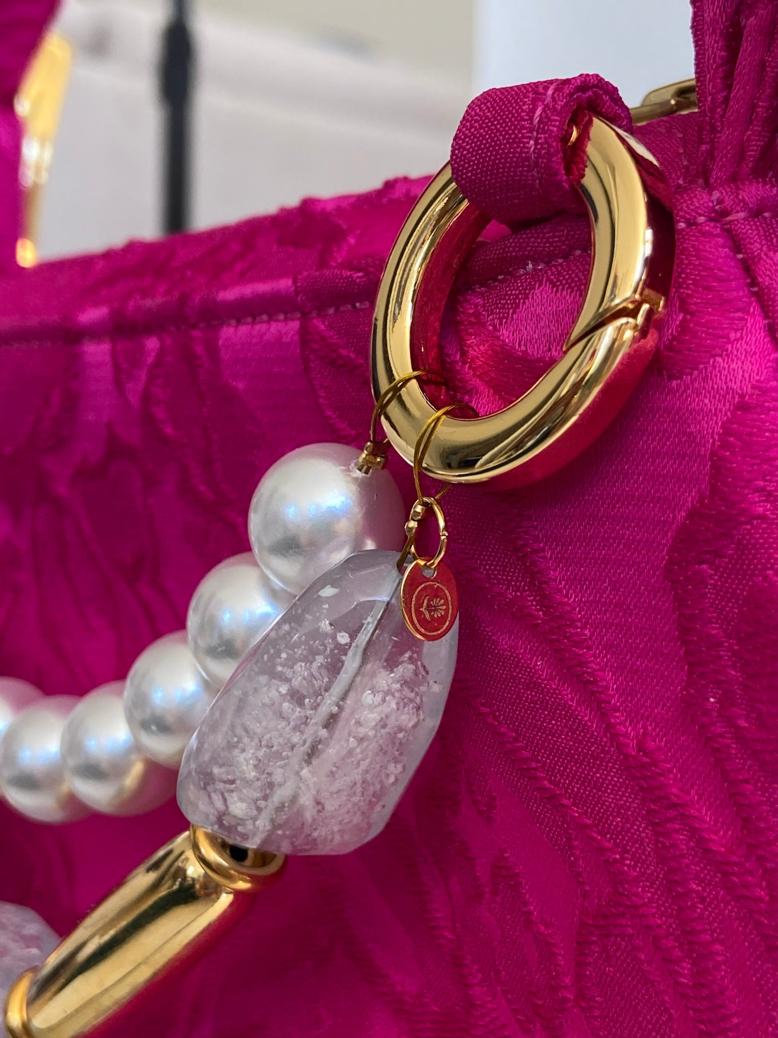 This double crystal charm is crafted from high-quality materials and made to complement the colors and textures of our collection, the charm easily attaches to the front loops of your bag.