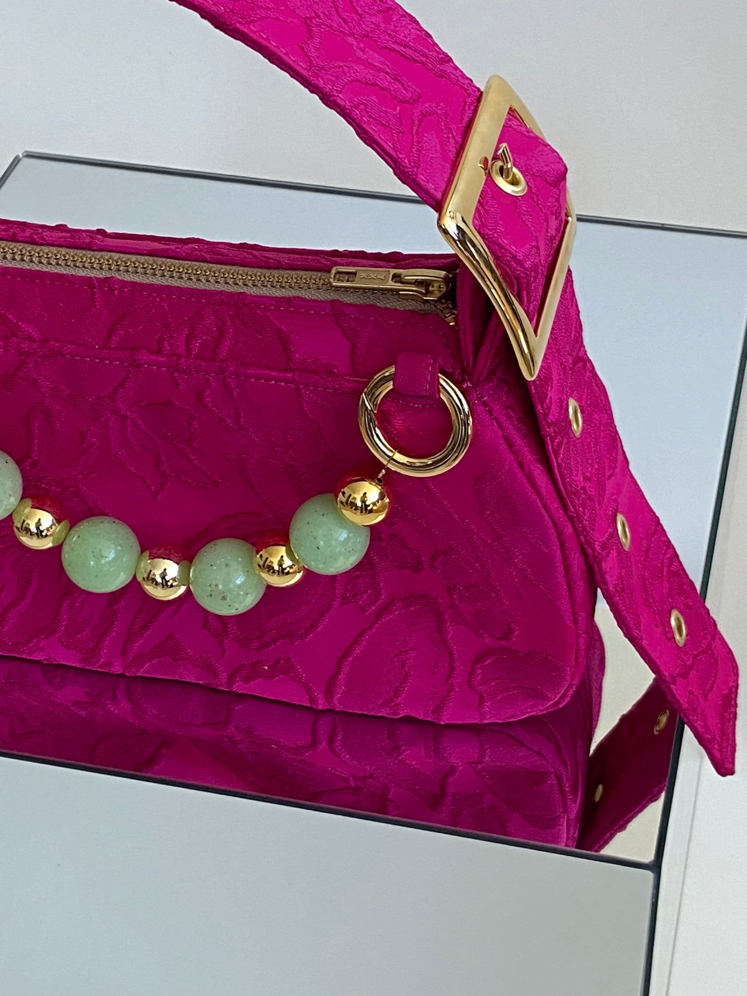 This Grape Charm Gold combines rich emerald-green enamel with gleaming gold accents, crafted from premium materials to echo the vibrant hues and textures of our collection. It attaches effortlessly to the front loops of your bag, adding a playful yet elegant touch.